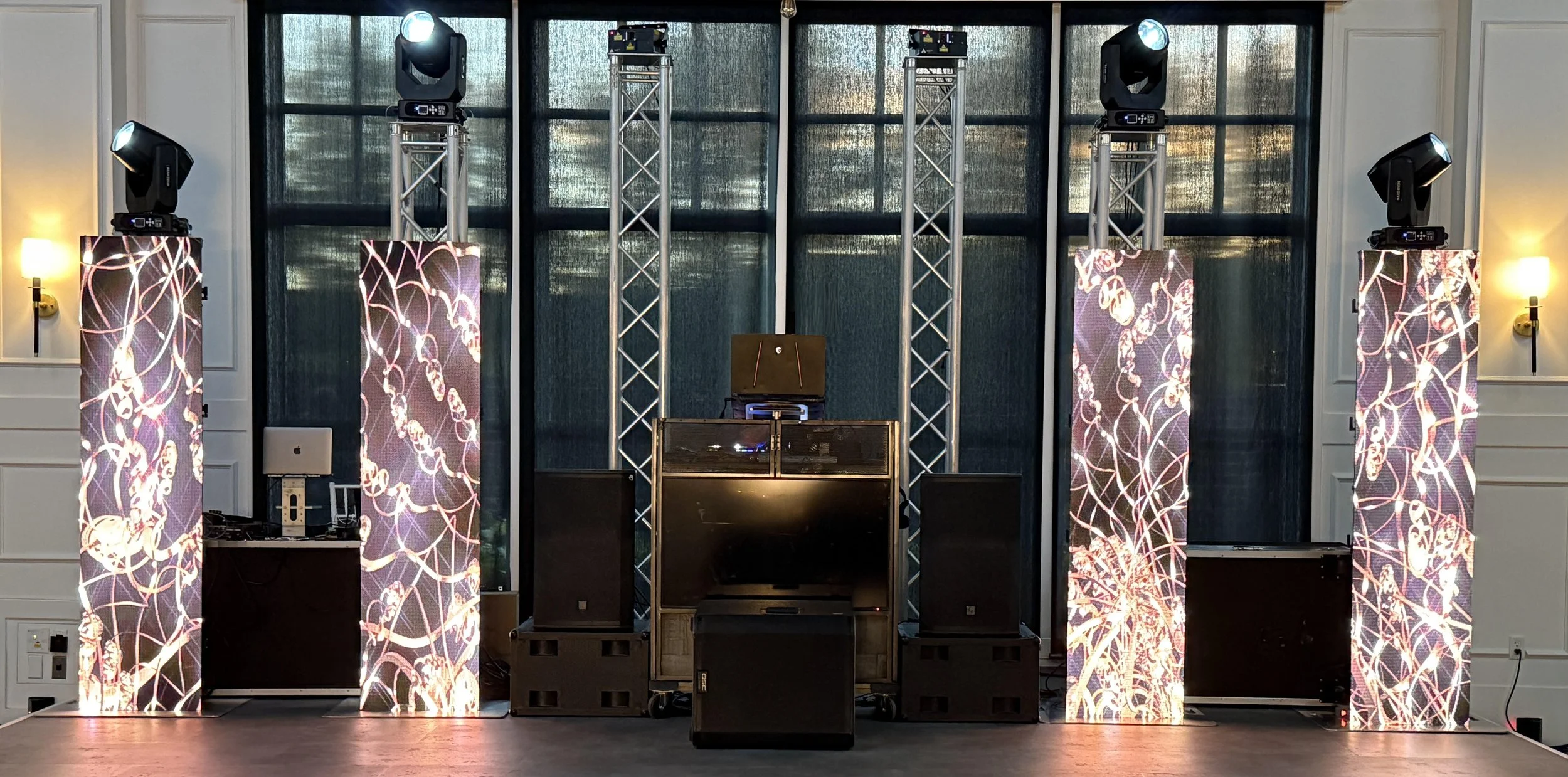 Our pros bring top speakers, subwoofers, and wireless mics for perfect sound—powerful yet comfortable. With sleek, unique DJ booths, this package has everything for an amazing event.